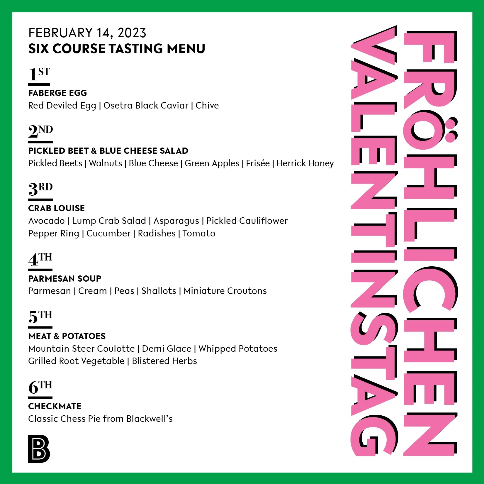 Join us Tuesday, February 14th at 6.00pm for a six-course tasting menu with optional wine pairings. Chef Todd Wagner and Josh Baldwin will be serving a French-inspired tasting menu in a formal atmosphere. Use the reservation request form below to secure your seats at $70 per person + $25/pp optional wine/beer pairing. Our team will reach back out to confirm your reservation and take payment. We hope you join us for this limited-seating special event!